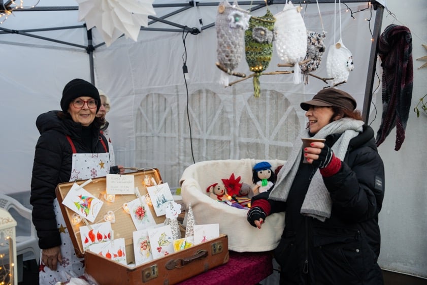 Mehr als 300 Besucher strömten auf den Markt, um in die vorweihnachtliche Stimmung einzutauchen. Zwei Stände mit duftendem Glühwein und herzhafter Bratwurst bildeten das kulinarische Herzstück des Marktes. Doch das war längst nicht alles: Aussteller boten eine Vielzahl an Leckereien an – von Soljanka über Flammkuchen bis hin zu süßen Waffeln, für jeden Geschmack war etwas dabei.