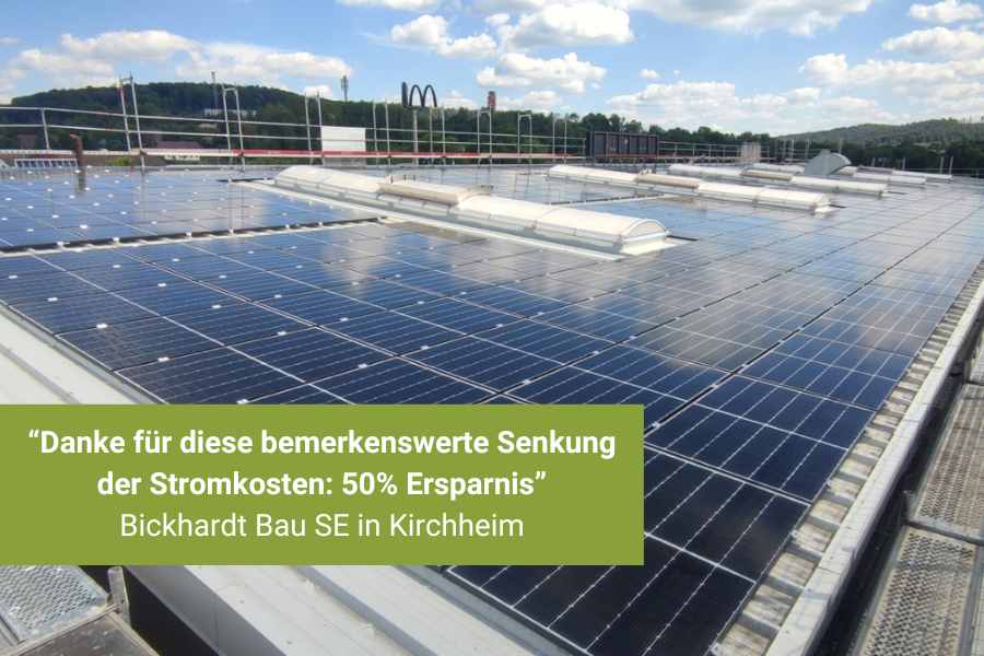 Die Bickhardt Bau SE mit Ihrem Hauptsitz in Kirchheim hat mit Sunvitec eine 500 kWp PV-Anlage realisiert und profitiert bereits täglich von deutlich gesunkenen laufenden Kosten. Aktuell werden 10 AC-Wallboxen am Standort durch uns installiert. Ein Speicher wird ebenfalls folgen. Mehr erfahren