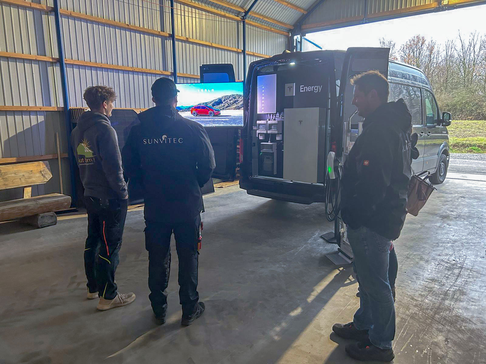 Die Schulung durch Tesla Energy umfasste weit mehr als die Powerwall 3 als einzelnen Stromspeicher. Im Fokus stand das Zusammenspiel aller relevanten Komponenten einer modernen Energieinfrastruktur – von der Photovoltaikanlage über den Batteriespeicher bis hin zur Ladeinfrastruktur für Elektrofahrzeuge.