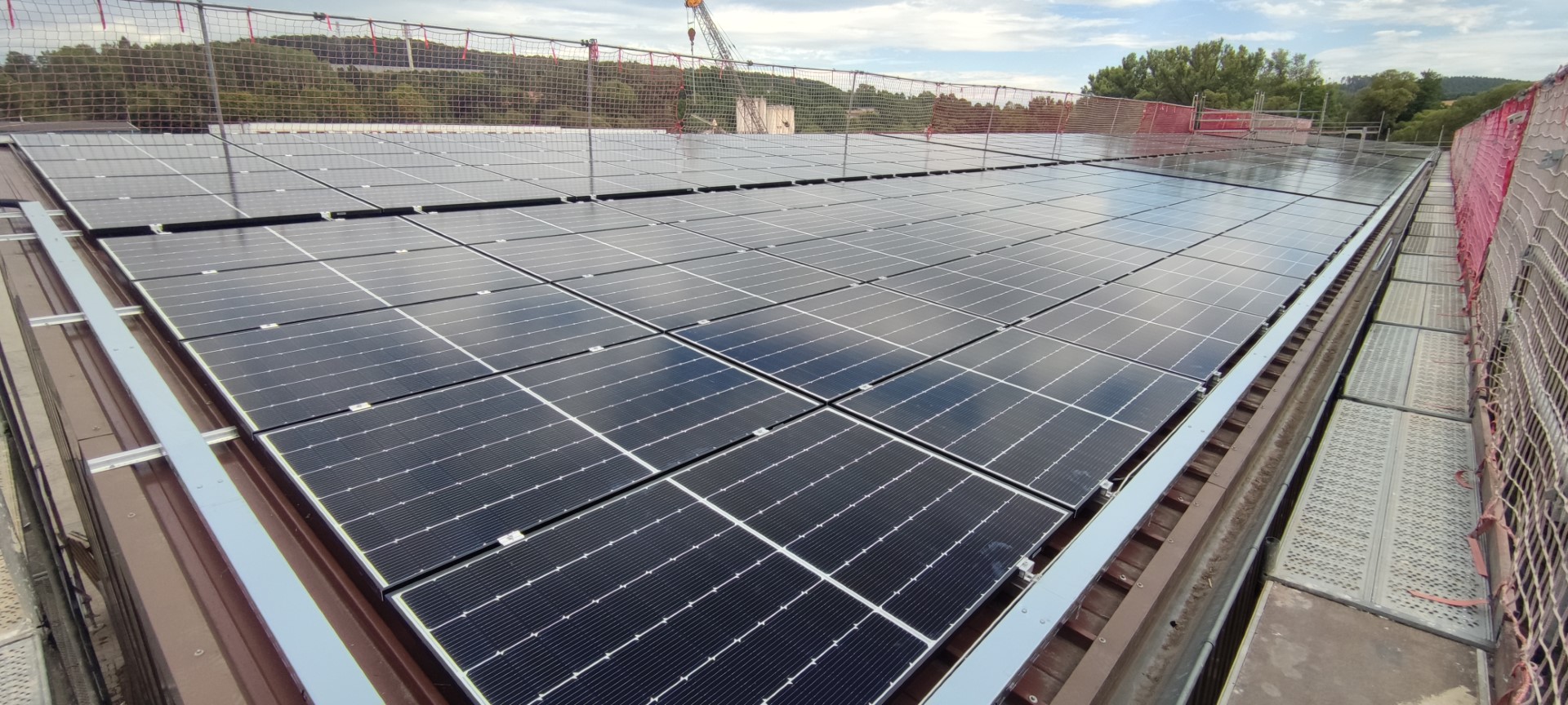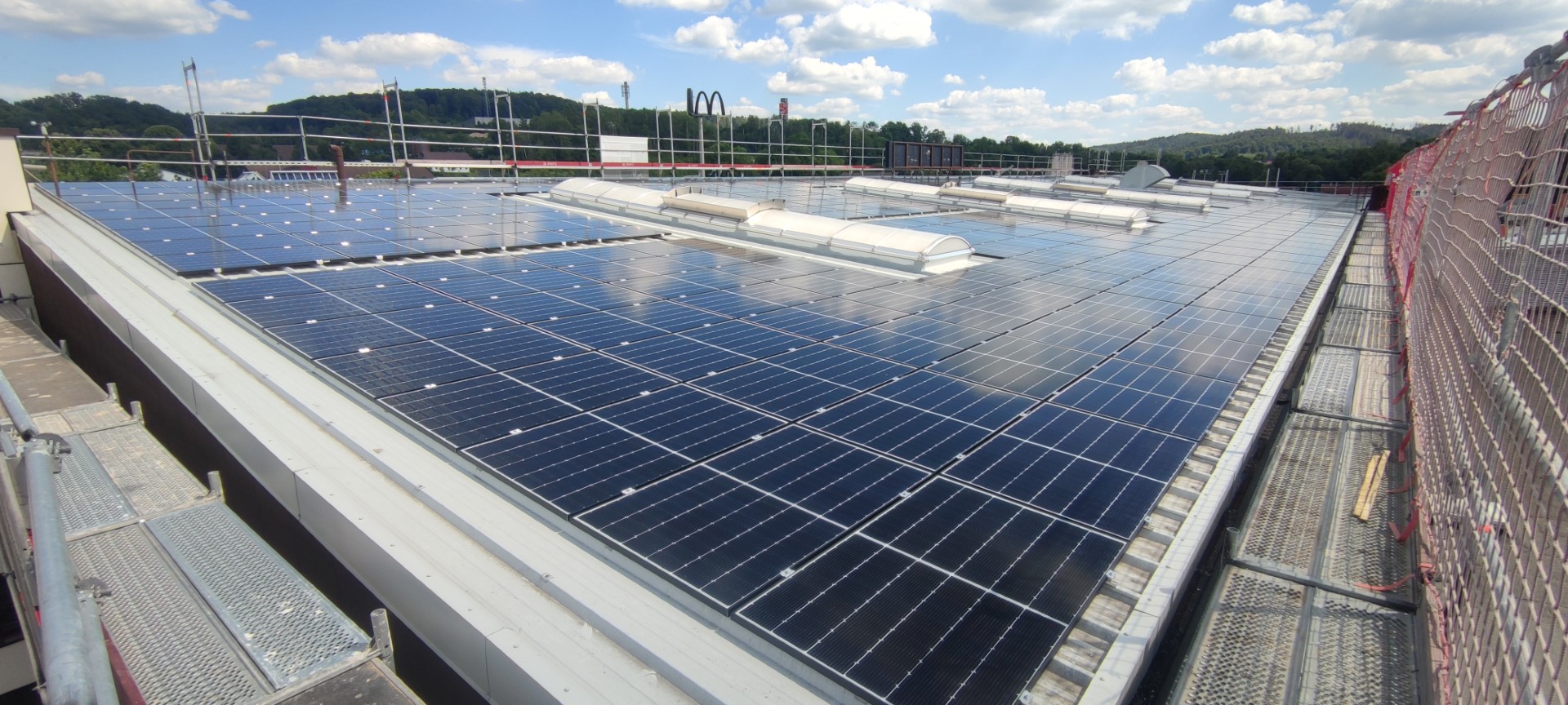 Diese Anlage setzt auf hochwertige Module von Q-Cells, Wechselrichter von SMA und ein zuverlässiges Gestellsystem von Aerocompact. Die beeindruckende Anlage generiert jährlich satte 450.000 kWh saubere Energie. Diese Energiemenge bedeutet nicht nur eine erhebliche Reduzierung des ökologischen Fußabdrucks, sondern auch eine bemerkenswerte Senkung der Stromkosten. In der Tat können Unternehmen, die auf Solarenergie umsteigen, bis zu 50% ihrer Stromkosten einsparen.